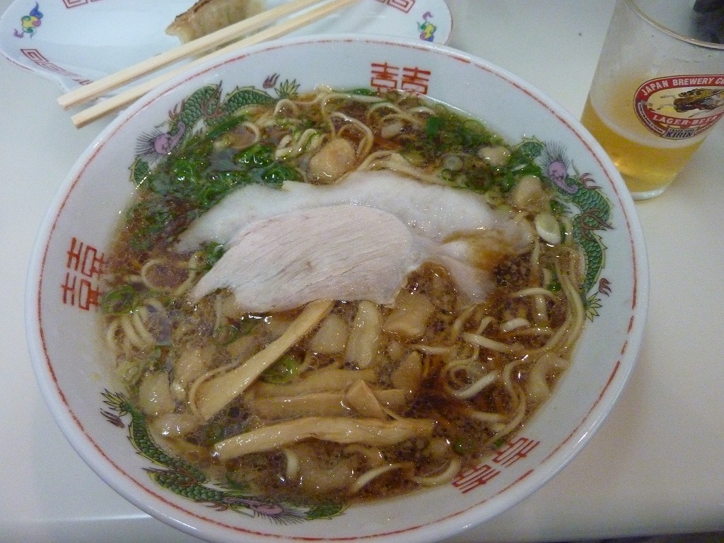 大体、私は思いつきでお店に行くと、結構な確立で休業日。 休業病 と呼んでます。 食べ物やさんはおろか、博物館、資料館、温泉施設なども休み。 温泉施設は月に一度の定期点検日だったり、ららぽーと等の大型商業施設の年数回の休みなどにも喰らいます。 びっくりしたのが、墓参りに行ったら墓工事で家の墓石が全部横倒しに・・・・!! 計画を立てるときは、必ずネットで調べていきます。 さて、 3連休の初日の土曜日。 これは、もう、押すな押すなの大行列のあと疲労困憊、ネタ切れ閉店パターン。 そいでも、行って見ますか。東のエリアに。 暑さのぶり返しの今日は、ホテルから歩くのは汗まみれになる事が予見されたので、たまには車で。 バスです。 休日には、100円で乗れる”好きっぷライン”というバスが尾道の繁華街で運行されている様ですが、土曜日は無いらしい。 尾道駅前から線路沿いを東のほうへ行くバス”市立病院行き”に乗車。 地元の人しか乗っていない様子。 始発だけど整理券3番。 3つめの停留所で降車。140円。 マリンテクノ尾道の寮の生徒が乗るバスの乗車場所に程近い、長江口交差点脇にバスは止まり、朱華園はすぐそばに。 さて、やっているんでしょうか?? 誰も、並んどらんよ・・ んでも、暖簾がでとる? やっとるの? 入口から店内に入ると、二人ほど今しがた入ってきた先客が。 厨房に向かったカウンターに、爽やかな兄ちゃんが疲れを見せない柔らかな対応で、”こちらで注文をお聞きします~” 店内は、そこそこ空いていて、激混みではない状況なので、若干長居をさせてもらう事に。 ラーメン 餃子4個 ビール(中瓶) 会計をすると、プラスチックの札を頂き、好きな席に。一人なので、カウンター席の端っこに。 本当は、焼きそばが美味しいとの情報を、ネットが全盛でない頃より密かに温めていたのですが、メニューがひっくり返っていた為出会う事は適わず。 店のオバちゃんが、手持ちのラーメン、ビール、餃子札を下げラーメンの順番札を持ってきてくれて、餃子はお客さんの多い時は多めに作ってあるらしく、すぐ出てきました。 時計は、現在の時間記録デス・・ 餃子を食べ食べビールをあおり、気持ちよくなってきた頃にお待ちかねの尾道ラーメン! 大き目の脂の浮いたスープ、やや固めの平打ち麺。 流行の行列が出来るつけ麺よりも、こっちのが好きだな~。 ご馳走様でした。朱華園さん。 マリンテクノ尾道への通学バスルートの途中にあるので、場所を覚えておけば便利です。 ※朱華園さん、近日休業の噂が・・・ |