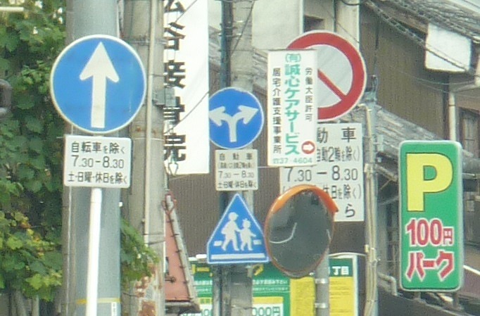 今回は、マリンテクノ尾道の講習と全く関係有りませんが・・・ 先日、過去の写真を見返していたら、 長江寮のバス乗車口の写真。 千光寺公園の山の東側を北上するルートの入口あたり。 赤丸地点。 何この標識郡!? ざわ・・ ざわ・・・ 元ドライバー脳がざわつきます。多数の標識の中から、何か違和感が・・・・ ぅわ~!! 手前から、(自動車は)直進のみ可能な指定方向外進行禁止。 数メートル先に、左右のみ進行可能な指定方向外進行禁止。 そして其の先、誠心ケアサービスの影に・・・・・ 100円パーク Σ(゚Д゚;≡;゚д゚) ((;゚Д゚)ガクガクブルブル ちょっと大げさだったけど、 わかった方、普段から勉強されてる方。 車両通行止め標識! 駐車違反ではありません。 違いが瞬時に解らないと、カモられます・・・ 全て、補助標識付き。 基本的には、平日の7:30~8:30は自動車通行禁止! これは、うっかりするとスルーしてしまう可能性が・・ 標識を邪魔するような看板が多い為、実効性はともかくとして。 (手前の工事看板は、関係しないと思います。) これは、下校時の写真。大型バスがぎりぎりすれ違うくらいの細い道路。 小、中学校が先にあるので、危ないので朝は一方通行にしているのでしょう。 地元の車はスルーなのか、一台一台許可を取っているのか、また、どれくらい守られているのかは解りません・・・ |