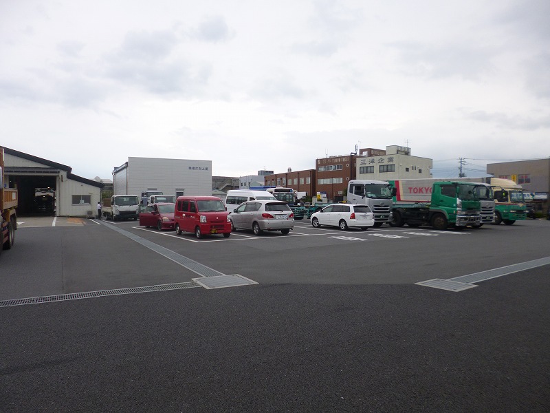 車検を待つ車、ナンバーを付ける外す小型大型車でひしめき合ってます。