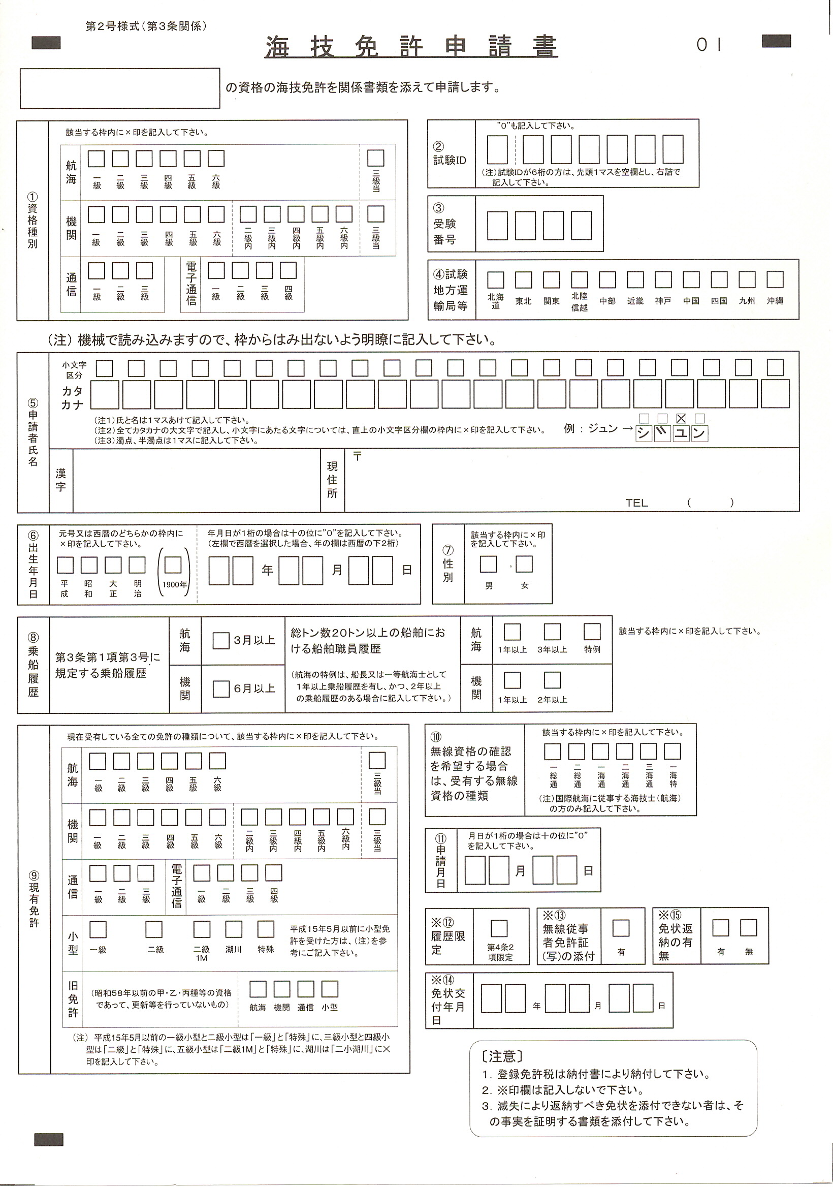 1. 海技免許申請書(第2号様式)…窓口で配布