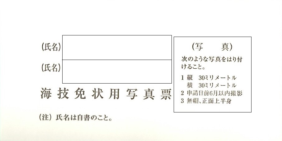 海技免状用写真票(第9号様式)…窓口で配布