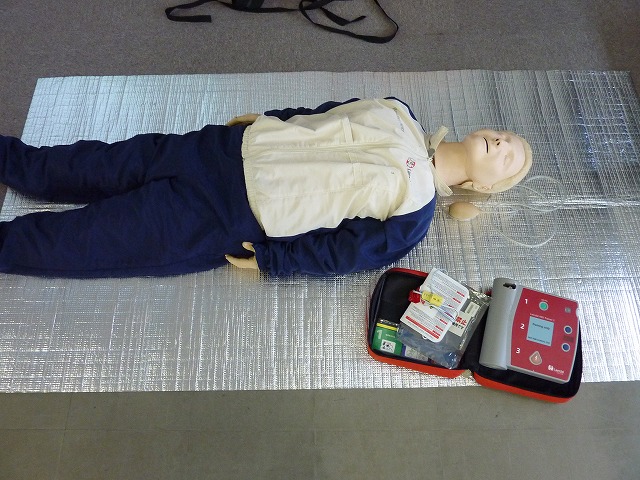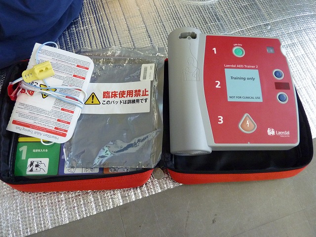 講習も2日目、今日はモデル人形を使って人工呼吸とAEDをつかったトレーニング。