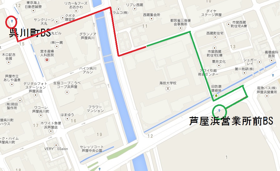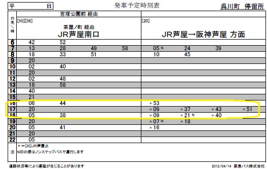 大阪に行ってもよし、六甲山に上がって夜景を見てもよし。 一番近い盛り場は、三ノ宮でしょうやっぱり~。 まずは、電車に乗るために海大のあるベイエリアから脱出します。 阪急・阪神・JR、何電車に乗るかは、個人の好みもあると思いますが、バスの対応可否がありますので、最寄のバス停の時刻優先で見てみましょう。 まず、海大近くの最寄のバス停が、芦屋浜営業所前と呉川町の二つ。 線は、歩きルートです。 バス停時刻表です。(H26.4月現在) 課業が終わった後、遊びに出るような時間を色で囲んでみました。 芦屋浜営業所前発 呉川町バス停発です。 芦屋浜営業所の次が、呉川町です。(なんだか本数が合わない?) 私は、寮を右に出て、芦屋浜営業所前から利用しました。 運賃は均一料金。 バスで最寄の鉄道駅に着いたら、関東とはまた一味も、ふた味も違う個性的な私鉄で盛り場に向かいましょう。 阪急、阪神、JRとカラーも車両の造りも違います。うまく言えないけど・・ 路線によって、なんだか客層も違う様な・・・ 正直、どれがベストか分かりにくいと思います。 乗ってみて、違いを肌で感じて見ると面白いですよ。 |