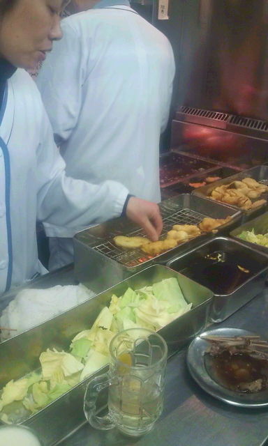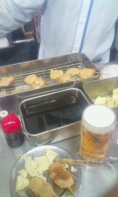 芦屋あたりからだと、阪神電車に乗って尼崎駅で、阪神なんば線に乗り換えると早いです。 ここで、隣のホームに止まっている阪神なんば線電車に乗り換える方法がちょっとびっくり! ①番線から③番線に電車を乗り換えるのなら、普通だと階段を上がりますが・・・ ①番線に、乗ってきた快速から下りる。 同じホーム②番線に止まっている電車に向かう・・ 両ドアが既に開いており、車内を通り抜けて③番線ホームへ渡り、なんば線電車に乗換える・・ youtubeでの参考動画↓ http://www.youtube.com/watch?v=m77ph7IYlqU ②番線が単線で、両方ホームだから出来る技でしょうが、 千葉と東京の一部でしか電車に乗らない私が初めてこの方式で乗換をした時は、とても感心しました。 全国的に私鉄が発達している所は普通、なのか?それとも、関西の”その場で絵を描く”知恵かな? 余談でした・・ あと、 大阪駅からは御堂筋線に乗ってなんばに降り立ちます。 有名な、道頓堀のネオンサイン郡。 金龍ラーメンが呼んでます。 もう少し足を伸ばして、通天閣のお膝元へ。 串カツ だるま 混んでます。 串カツやさんは沢山有るので、無理に並ばなくても美味しい所は沢山あります。 ジャンジャン横丁の”八重勝”も美味しいですよ。 遊技場 スマートボールで遊べます。 あんまり南下しすぎて門限が有るのを、忘れずに~。 |