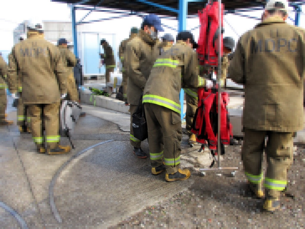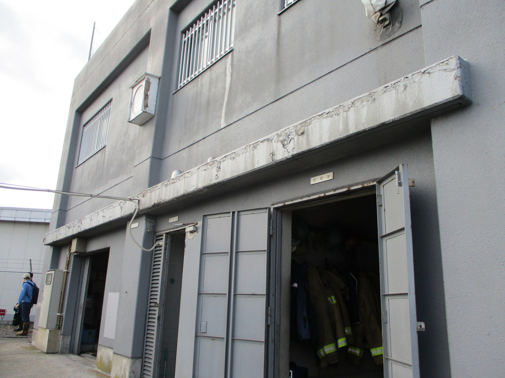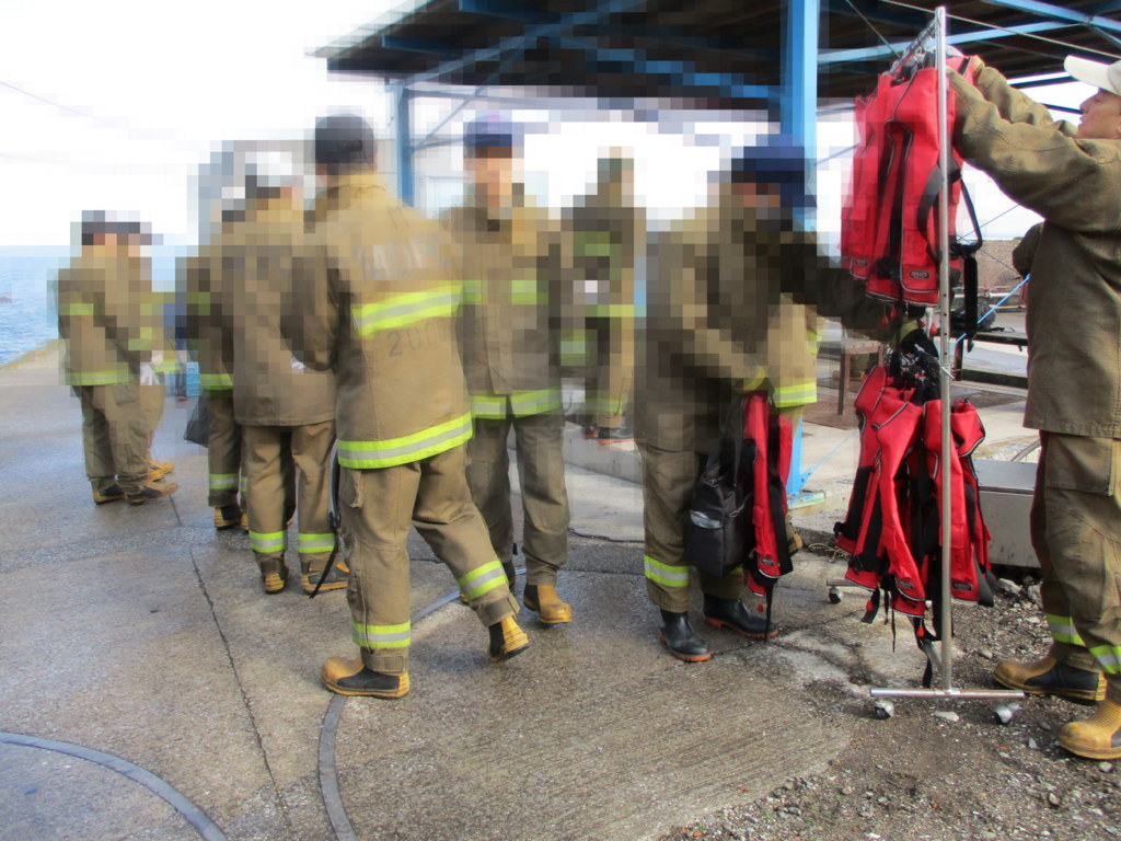 防火服を着て意気揚々と第二海堡に上陸したのですが、一旦防火服を脱ぐようにご下命。