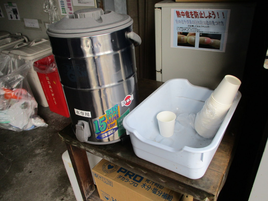 お弁当、お茶を受け取り、付随する建物の下駄箱で長靴を脱ぐ。