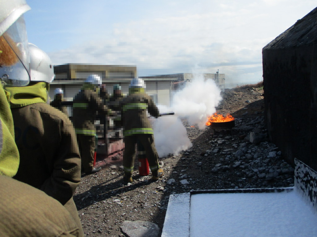 そして、我々研修生も一人いっぽん、消火作業を実施。