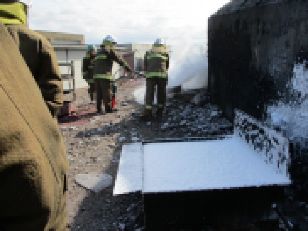 手前の白い槽は、泡消火器の跡。
