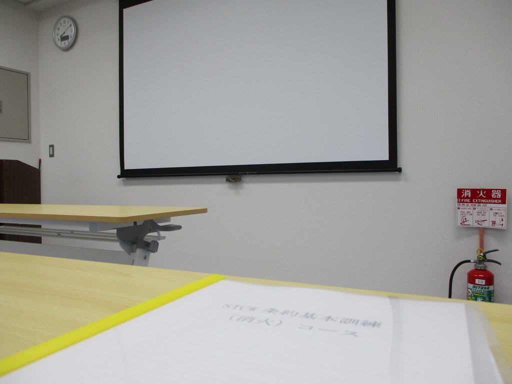 尾道マリンテクノにおける”上級機関英語講習”、海技大学校で実施された”消火、救命講習”のレポ。機関部員の免状更新手続き、STCW講習も。