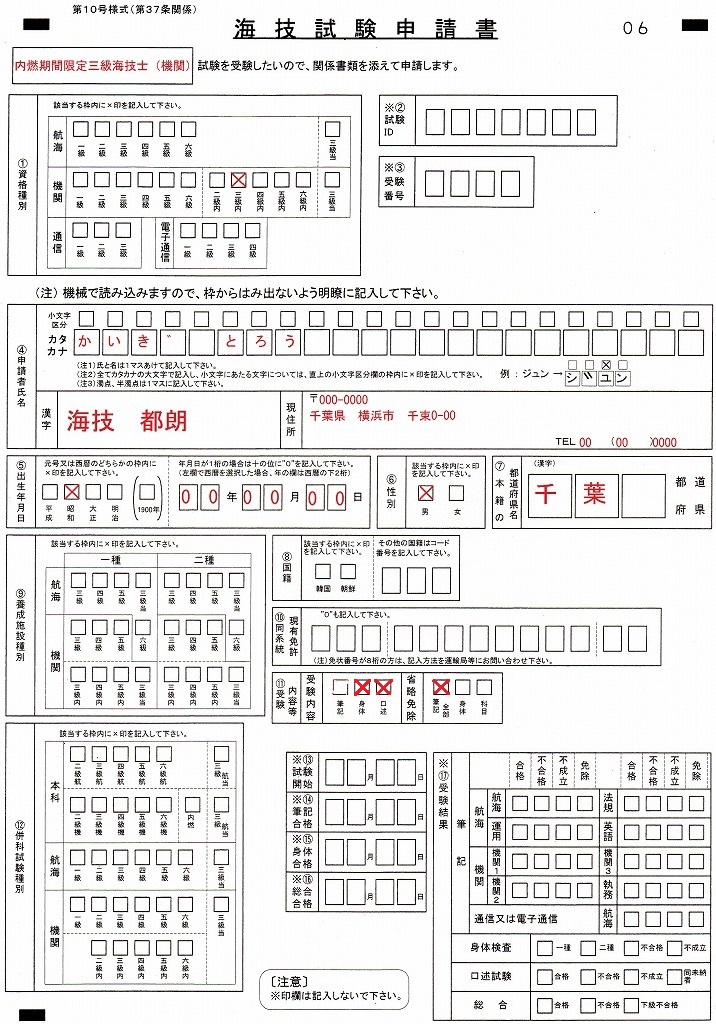 あ、あったあった。 海技士口述試験申請に必要な、書類は・・と、手引きをよく読みながら、不必要な解説には×をし、いるものだけをピックアップ。 海技試験申請用紙(1) 海技試験申請用紙(2) 受験票 海技士身体検査証明書 写真2枚 納付書 住民票 更に郵送の場合は、 返信用封筒 乗船履歴証明書 コレくらい、だろうか・・ 海技試験申請用紙(2)や、納付書、海技士身体検査証明書 はダウンロードして印刷。 OCR用紙の海技試験申請用紙(1)や受験票は、運輸局にもらいに行かないと無い・・・ 困ったな~と職場でぼやいていたら、甲板部の同僚が ”試験の時にみんなの為に余分にもらってきてるのがあるから、使いなよ” と頂く事ができました。アリガトウ! 助け合い、大事ですね。自分も行ったらもらって帰ろう。 |